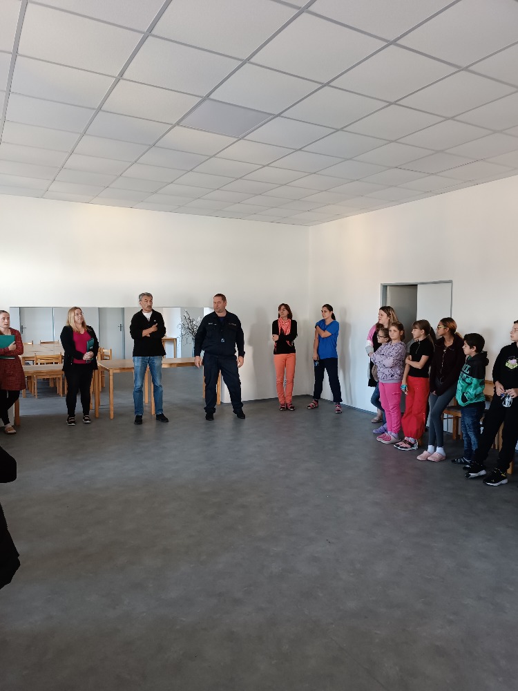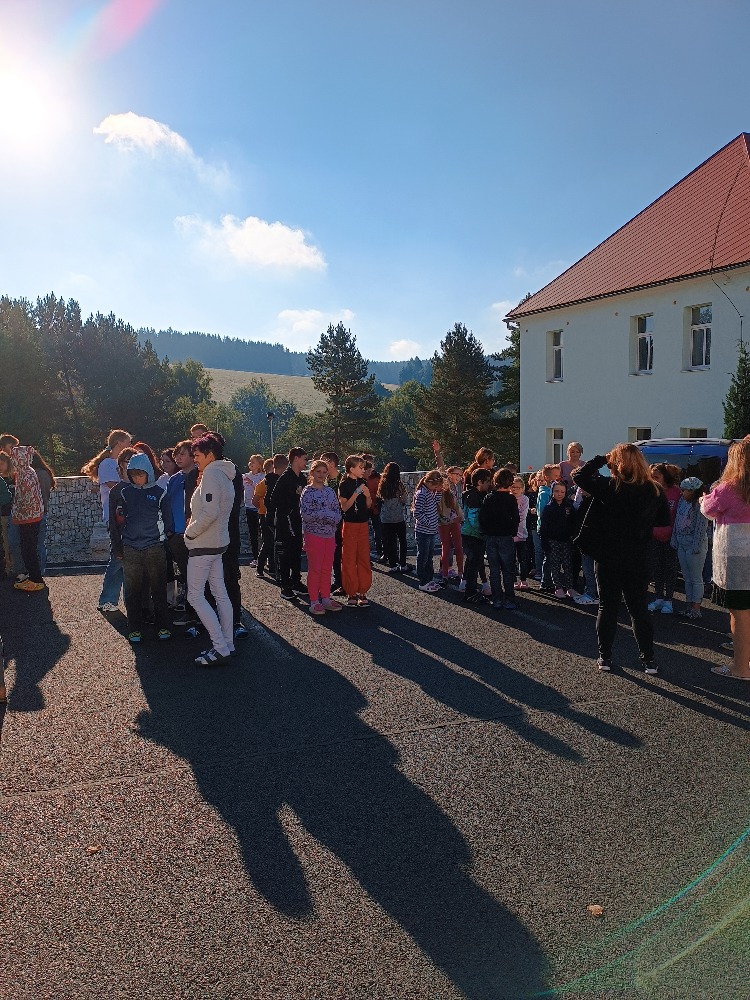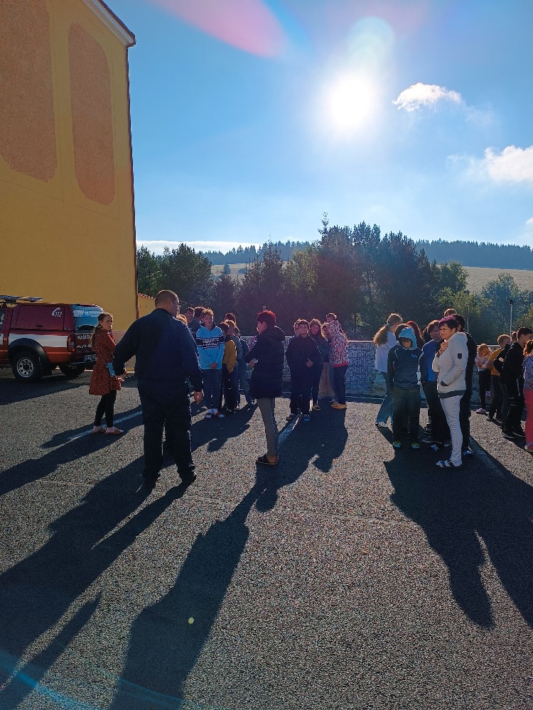 V pondělí 25.9. žáci vyzkoušeli rychlé opuštění budovy. Po vyhlášení požárního poplachu byla škola prázdná za necelé tři minuty. Ze seřadiště na parkovišti jsme se přesunuli do společenské místnosti budovy č.p. 370 ,kde velitel hasičů, pan R.Windisch, poplach zhodnotil a pochválil nás. Odpoledne si paní učitelky vyzkoušely hasicí přístroje.