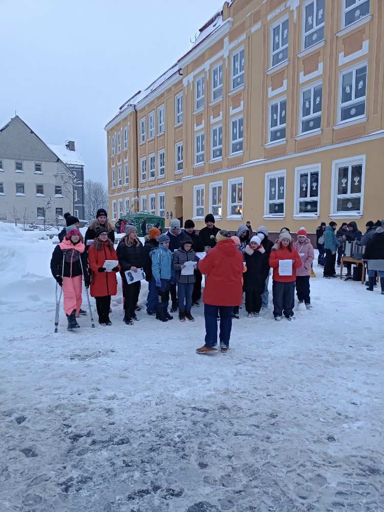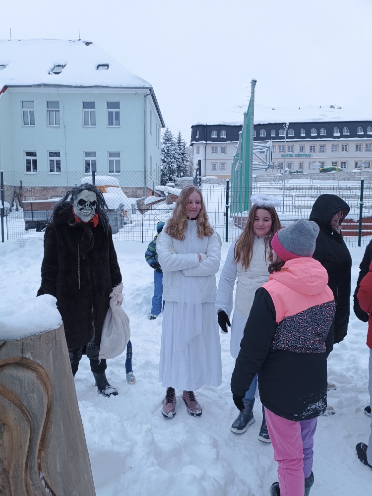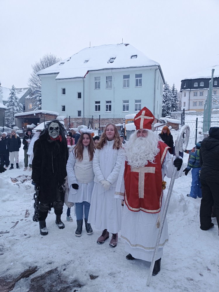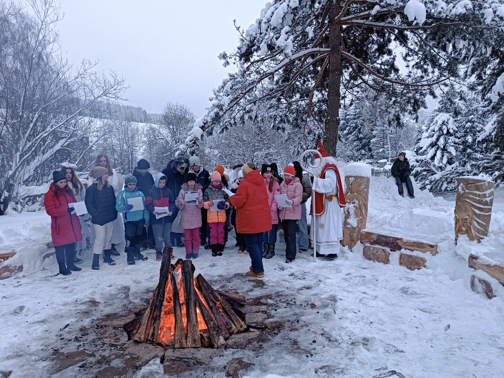 Krásný vánoční čas začal první adventní neděli, kdy naše děti zazpívaly při rozsvícení vánočního stromku. V pondělí se za školou konala Mikulášská stezka. Než začala, zazpíval nám dětský sbor krásné koledy. Na konci stezky čekal horký čaj a buřtík na ohni. Po celou dobu na děti dohlížel Mikuláš a jeho družina. Také v úterý navštívil školu i školku Mikuláš a rozdal všem sladké dárečky.