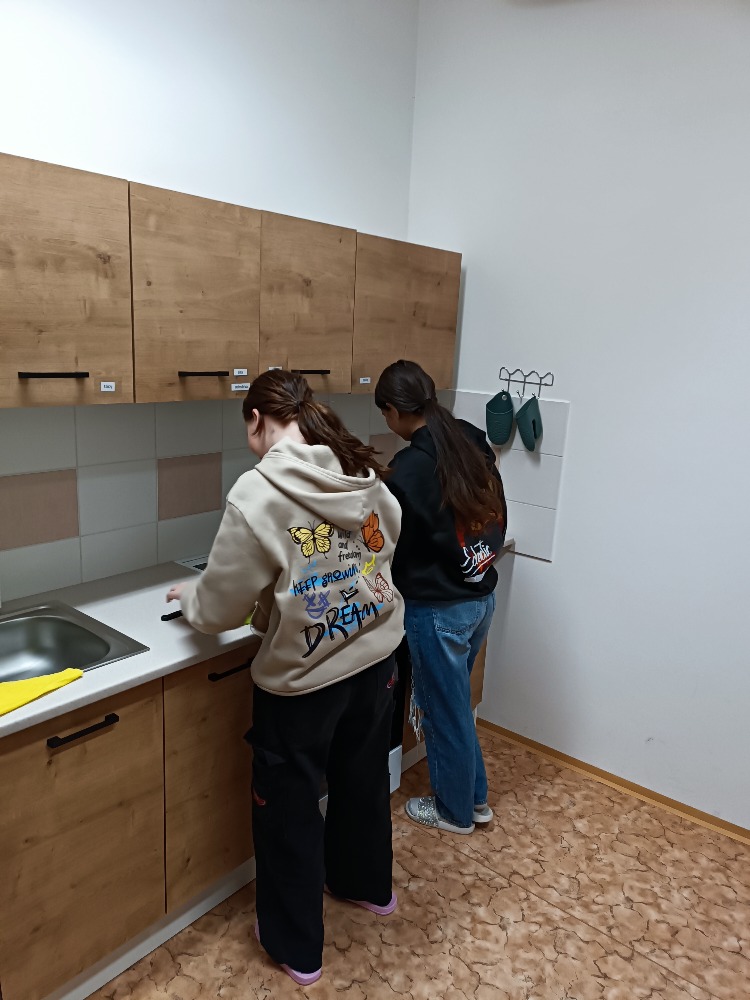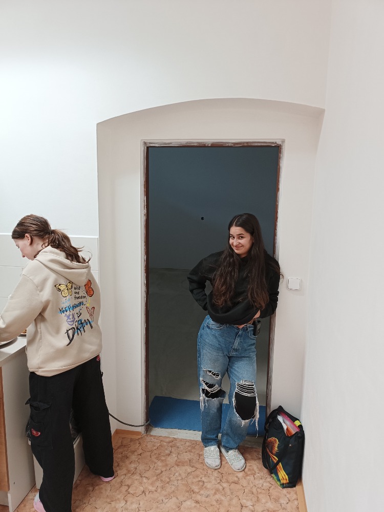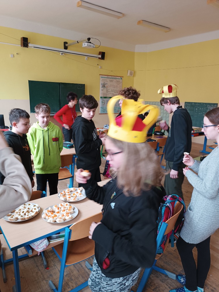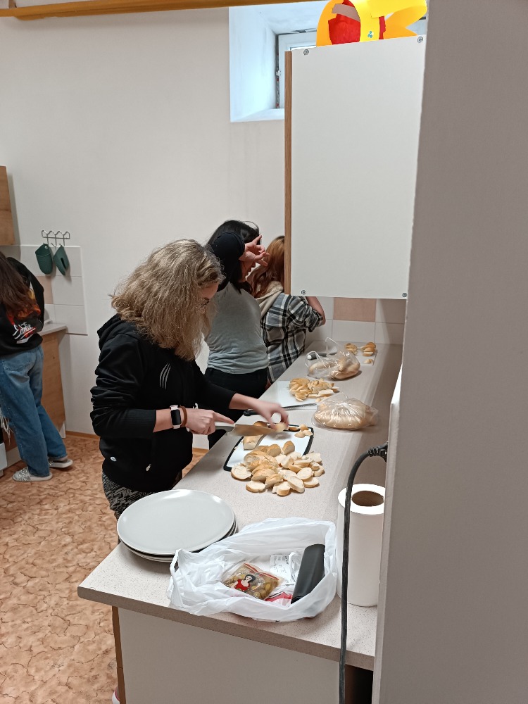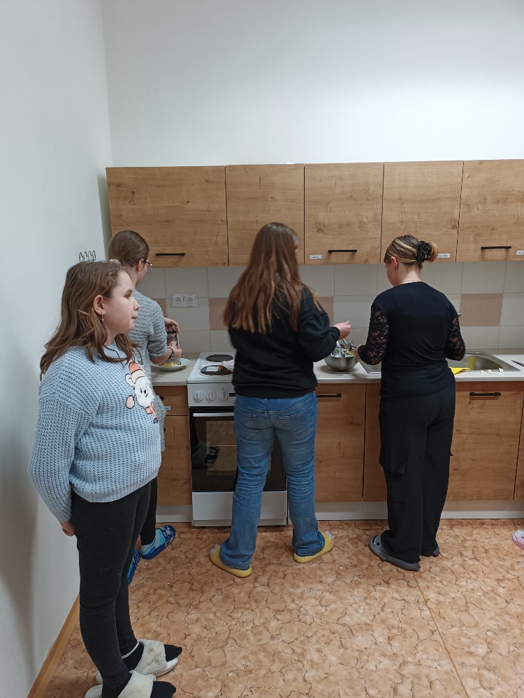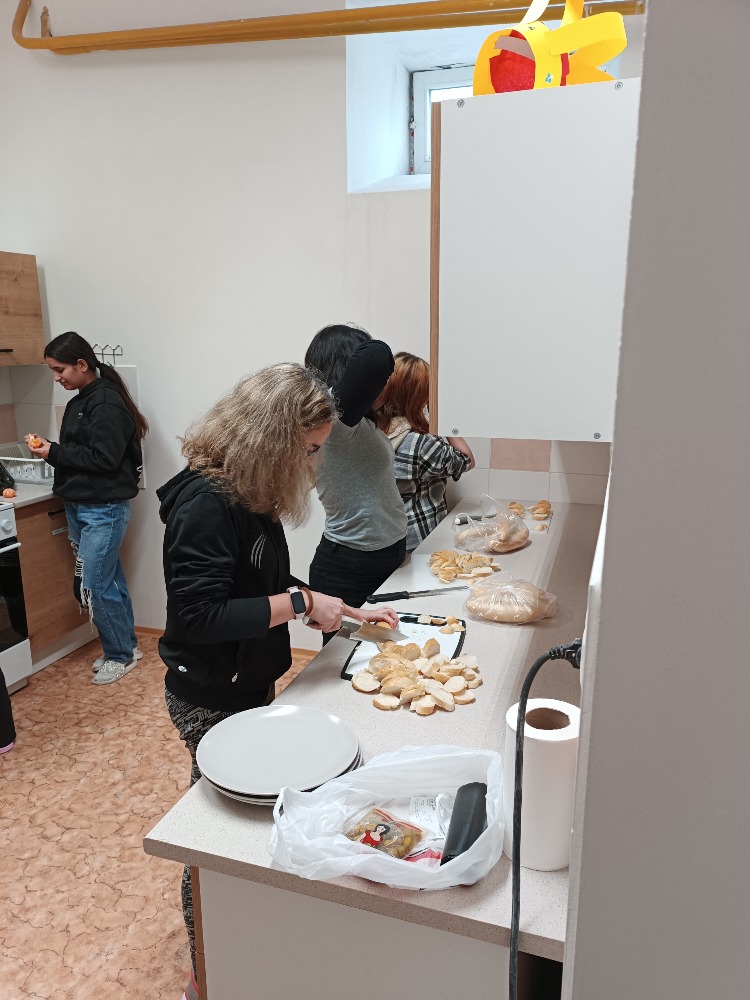 Děvčata ze šesté a sedmé třídy si vyzkoušela naši novou kuchyňku a připravila pro sebe i své spolužáky výbornou česnekovou pomazánku.