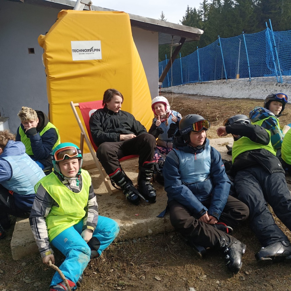 Poslední den jsme si užili, naučili jsme se někdo víc ,někdo míň, ale vydrželi jsme ! Někteří z nás si vyzkoušeli posedět i na rolbách a skútrech a kdo ví? Možná z nás budou jednou kolegové .Ještě jednou veliký dík za štědrý sponzorský dar Novému skiareálu Klínovec a půjčovně JPK a těšíme se na další rok!