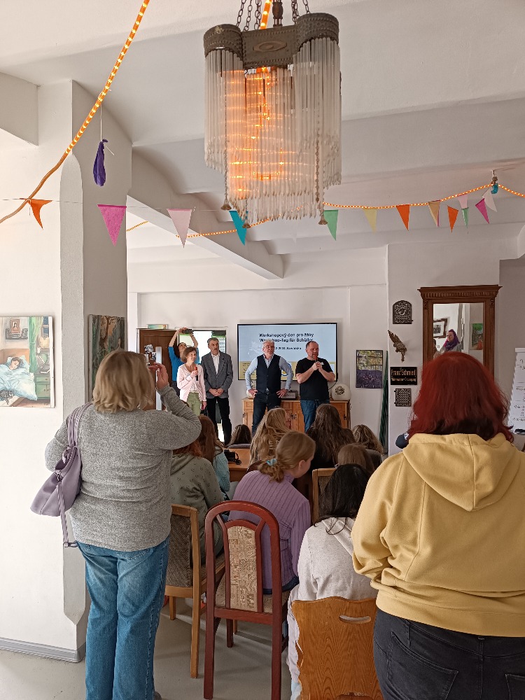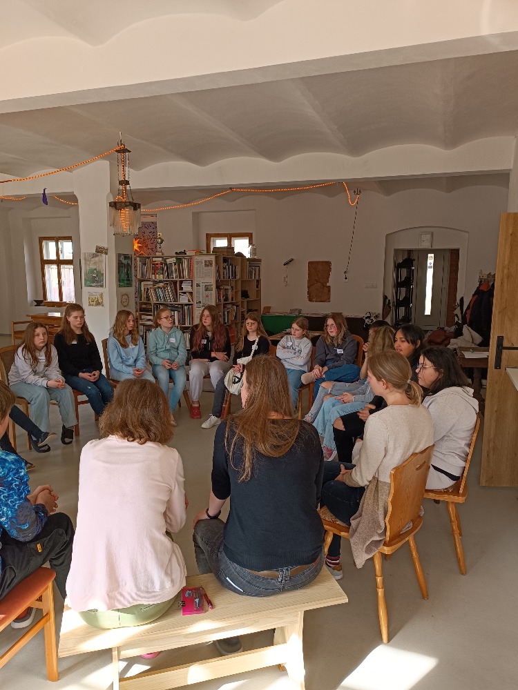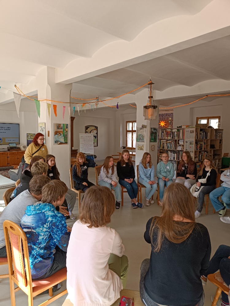 V pondělí 18.3. jsme si poprvé otestovali kreativní workshop současně pro české i německé žáky a myslím, že celý den se skvěle vydařil. Proběhl divadelní workshop Franka Weisseho, workshop Marianny Sršňové o zvládání úzkosti a greenscreen workshop Petra Mikšíčka, kdy děti za 45 minut vytvořili jeden krátký film. Organizace byla perfektní, děti si to náramně užily. Tímto setkáním začíná znovu naše partnerství s Grund und Mittelschule Lauter. Těšíme se na další shledání, které doufám, brzy proběhne. Děkujeme všem dětem, pedagogům i lektorům za krásně užitý den. Projekt byl podpořen z prostředků Česko-německého fondu budoucnosti a spolkem DoKrajin.