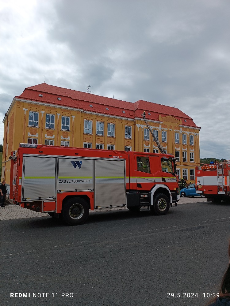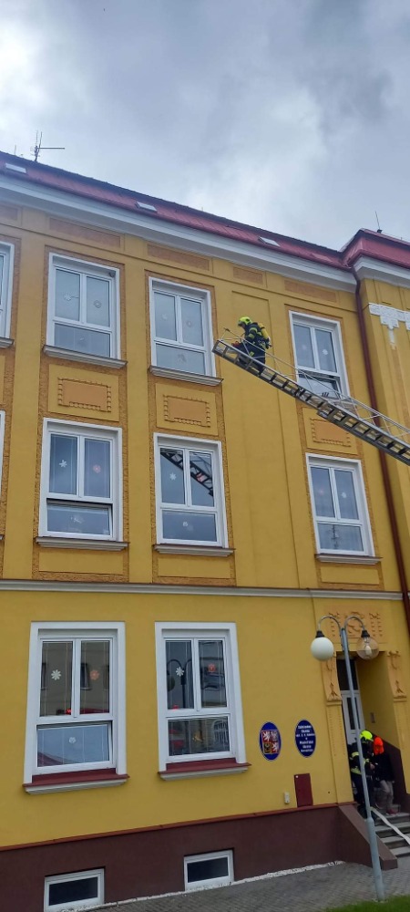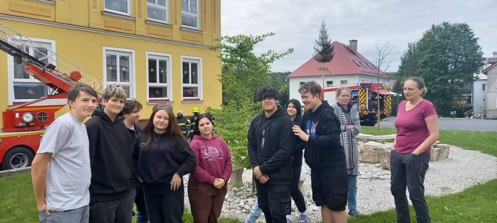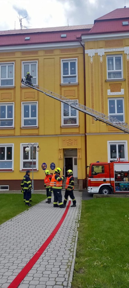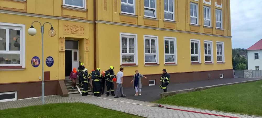 Dnes si žáci, učitelé a zaměstnanci školy vyzkoušeli, jaké je to být v „ohrožení života“.V naší škole měli cvičení hasičské sbory z Kovářské, Vejprt, Božího Daru a Klášterce nad Ohří. Vyzkoušeli si vyvádět osoby ze zakouřených prostor, záchranu osob z vyšších pater pomocí plošiny a likvidaci požáru. Zážitek to byl ohromný ! Zasahujícím hasičům tleskáme a doufáme, že nebudeme zažívat opravdový zásah.