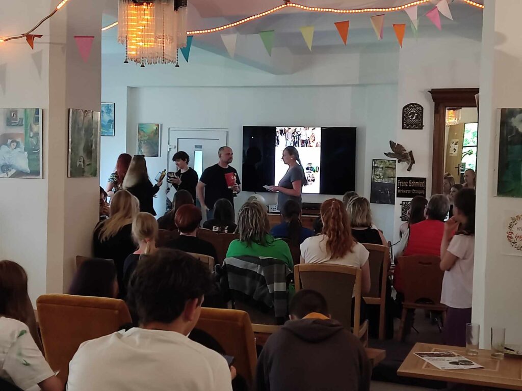 Naše půlroční snažení vyvrcholilo na filmovém festivalu 21.6. v Krušnohorském Poutníkovi. Spolu se ZŠ Březno a ZŠ Krajková jsme představili veřejnosti, rodinám a kamarádům vše, co jsme vymysleli, natočili a sestříhali. Různé kategorie, hraný film, dokumentární film či youtubering poměřily naše síly, daly nám zabrat, ale výsledek stál za to a byl odměněn ohromným potleskem a úsměvem na tváři všech přítomných. Odměnou nám byl certifikát, šampaňské, velký kbelík zmrzliny, ale hlavně vytoužený Oskar. Chtěli bychom poděkovat panu řediteli, že nás občas pouštěl z vyučování, všem, kteří se podíleli na dokumentu, poděkování je i jeho součástí, ale hlavně panu Petru Mikšíčkovi za úžasné lektorování a půjčení filmařské techniky. Tento projekt byl financován Evropskou unií, Národním plánem obnovy, Ministerstvem kultury a spolkem DoKrajin. Těšíme se na další rok, pokud budeme mít příležitost, chtěli bychom se zdokonalit a znovu natočit něco úžasného. Velké díky všem. 🙂 A doufáme, že brzy nashledanou……..