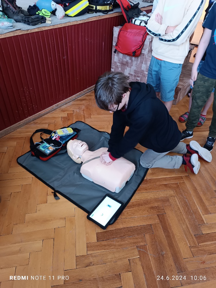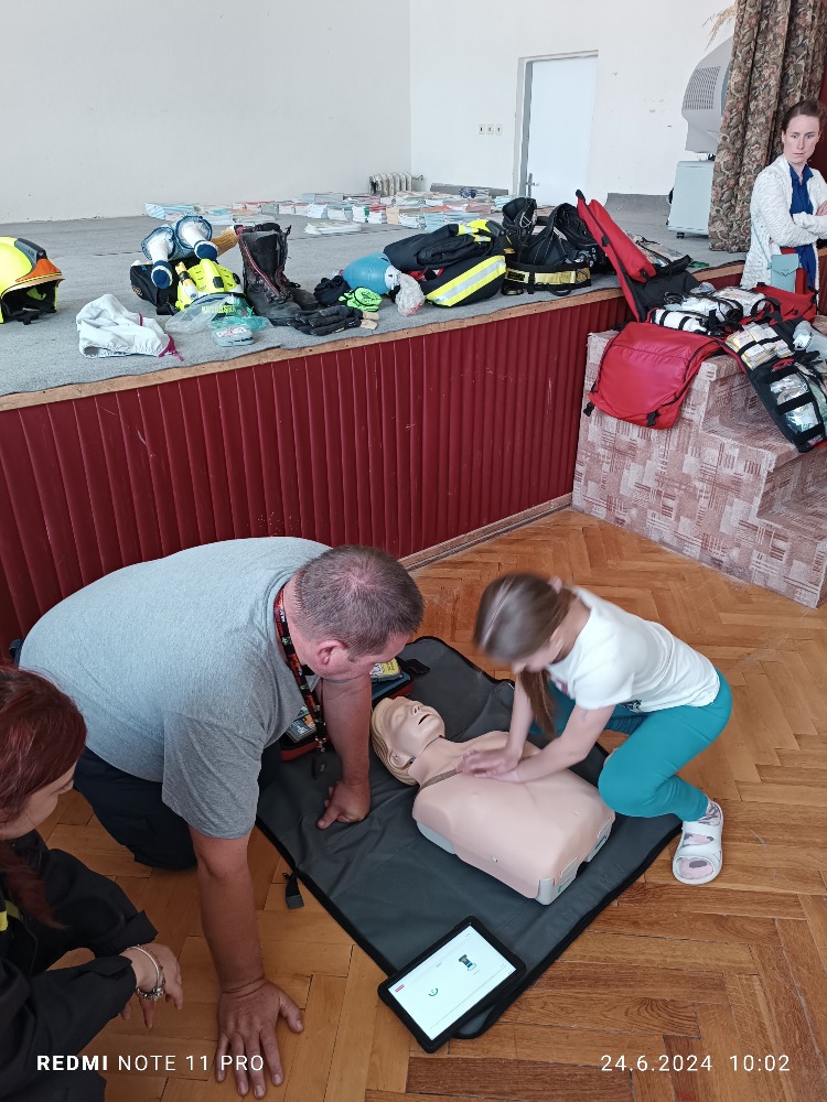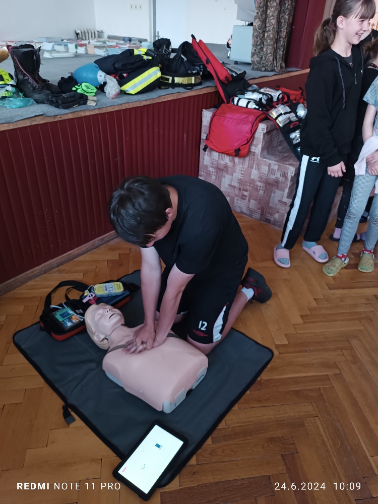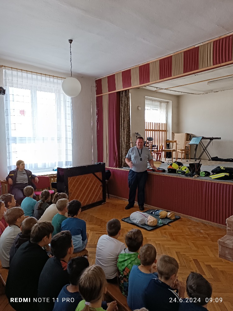 Neštěstí nechodí po horách, ale po lidech, a proto dnes žáci ve škole přivítali pana Windische ,který jim předvedl, jak se zachovat v některých krizových situacích. Že to není lehká práce, si mohli vyzkoušet při masáži srdce na figuríně. Největší zážitek je čekal nakonec , opravdové hasičské auto !