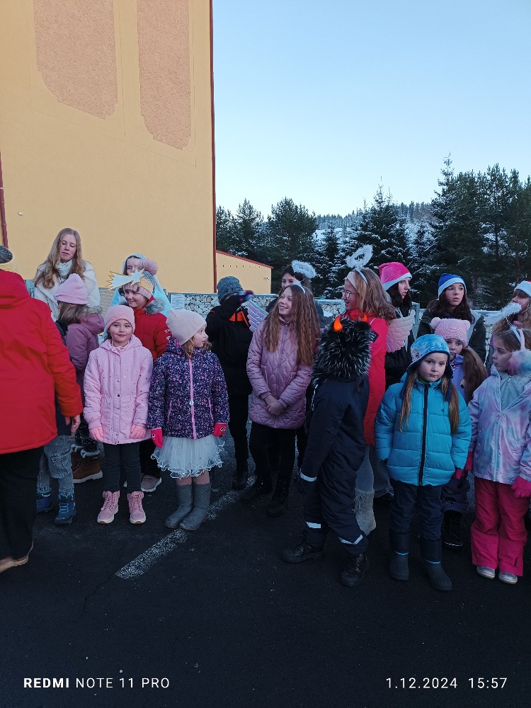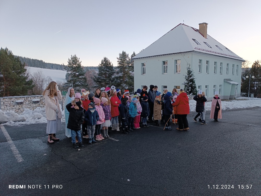 Dnes děti zazpívaly při rozsvěcení vánočního stromečku pod vedením paní Jarmily Cmuntové. Součástí krásných vánočních koled byl i tematický příběh panny Marie a Josefa. Všem se nám vystoupení dětí velice líbilo a navodilo krásnou vánoční atmosféru první adventní neděle. Zahřáli jsme se výborným čajem a teplým svařákem, který připravil Městys Kovářská. Moc děkujeme za krásný zážitek.