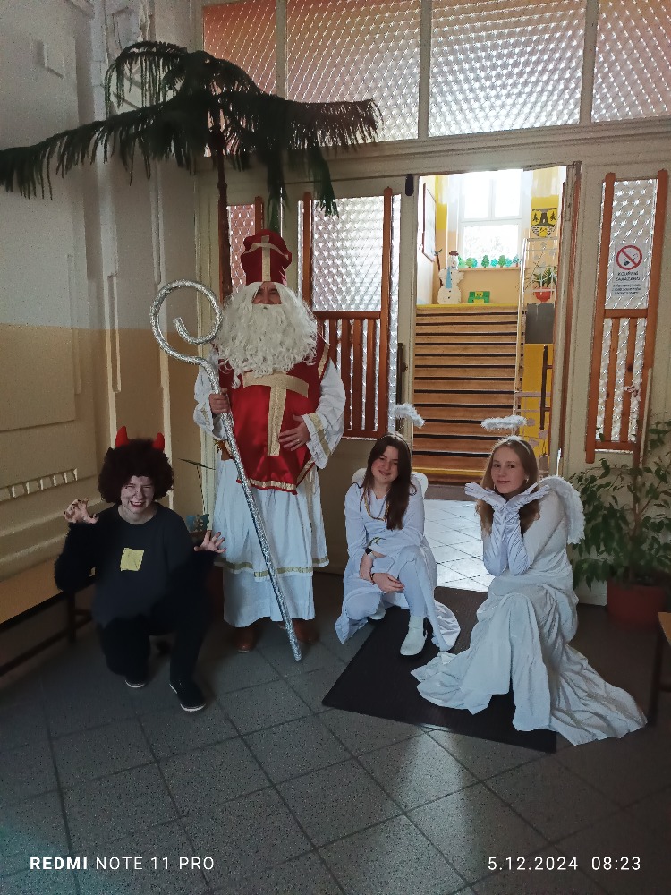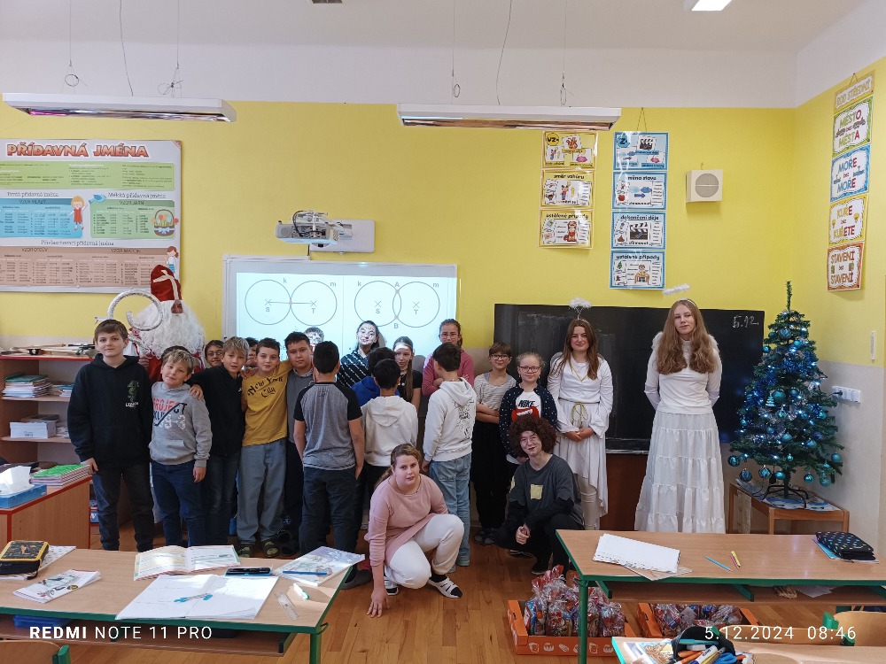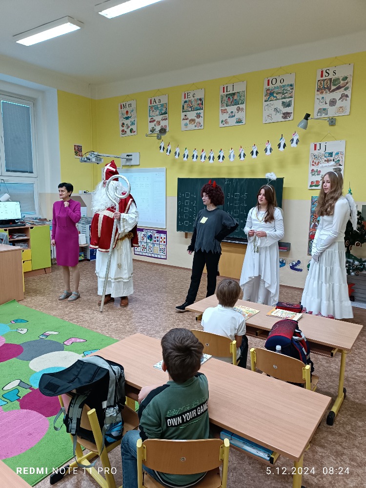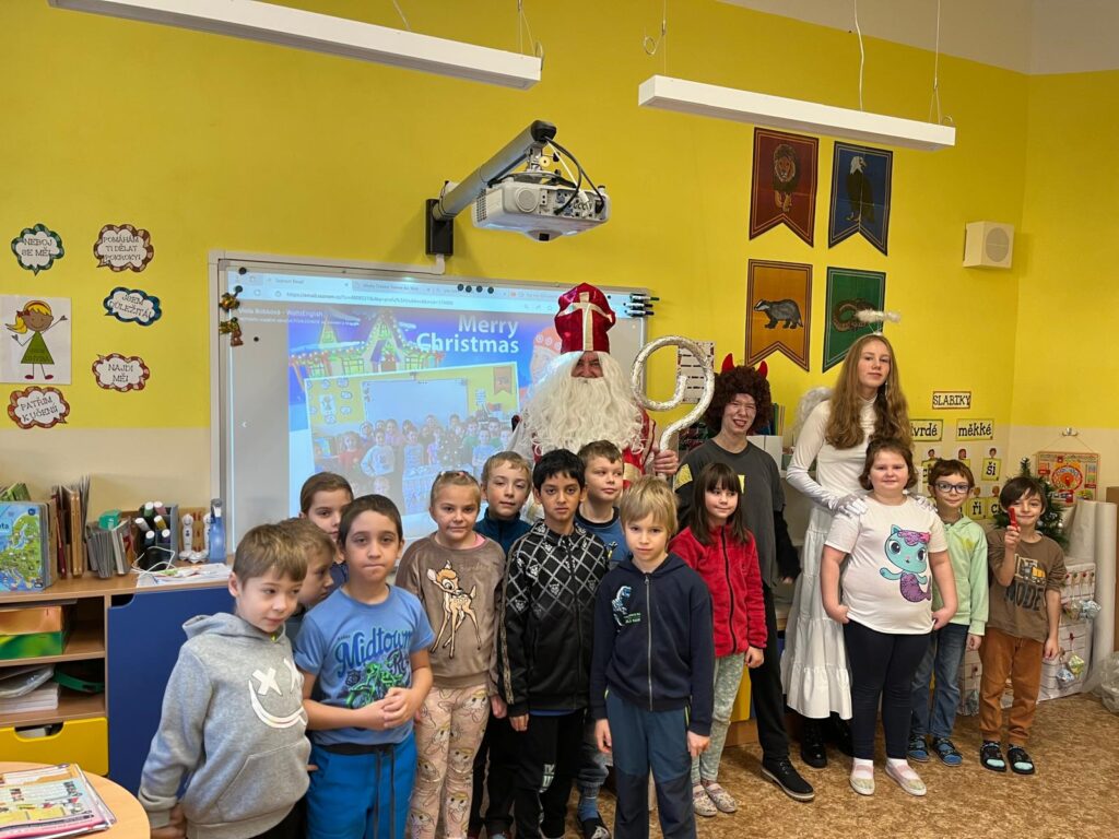 Ve čtvrtek 5.12. navštívil naši školu i školku Mikuláš se svou družinou a přinesl všem dětem sladké dárečky. Dětí zazpívaly, zarecitovaly a svěřily se Mikuláši, co by si přály pod stromečkem. Radost v očích dětí byla odměnou a zároveň poděkováním za dárečky, které dostaly. Velké díky patří Městysi Kovářská za balíčky, které pro děti připravil. Děkujeme Mikuláši. 🙂