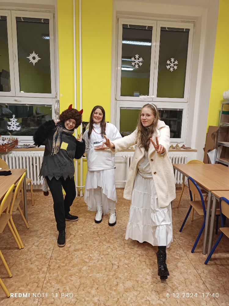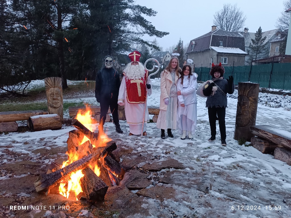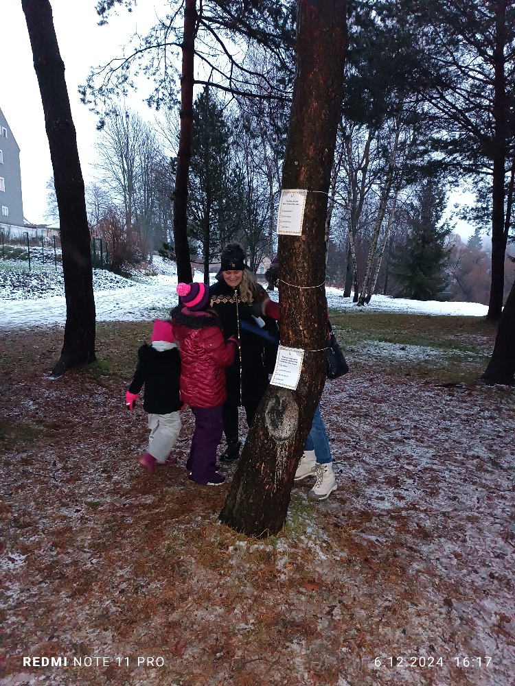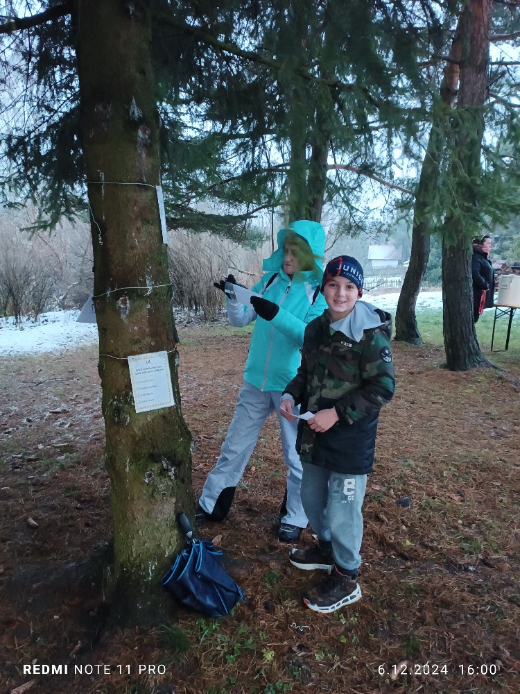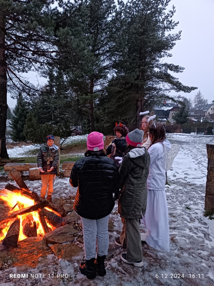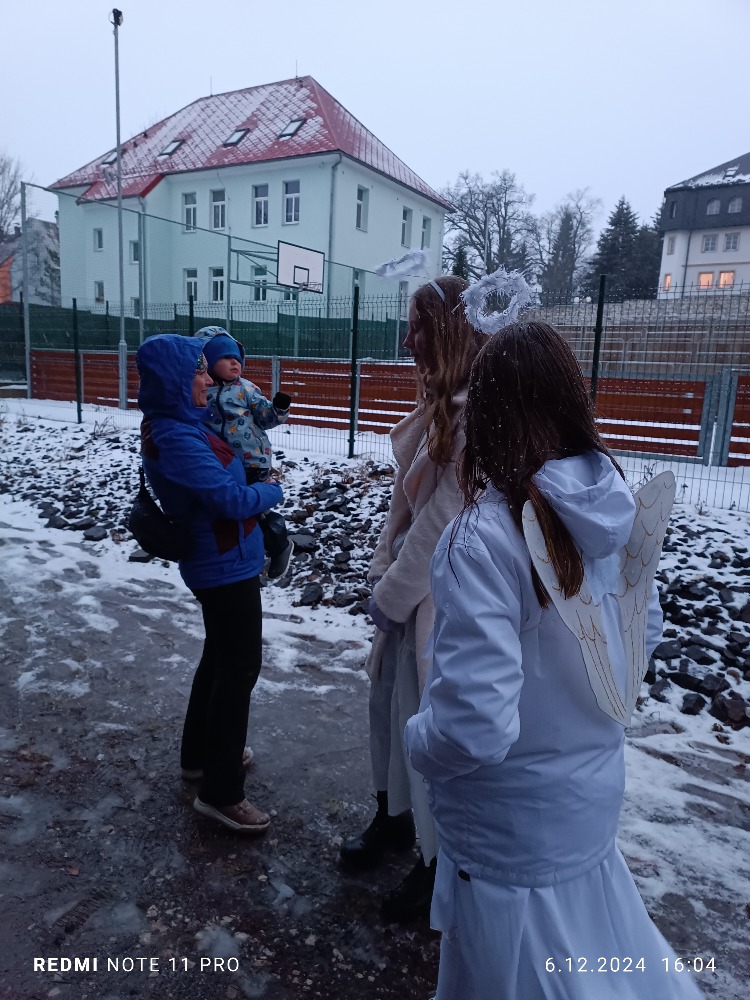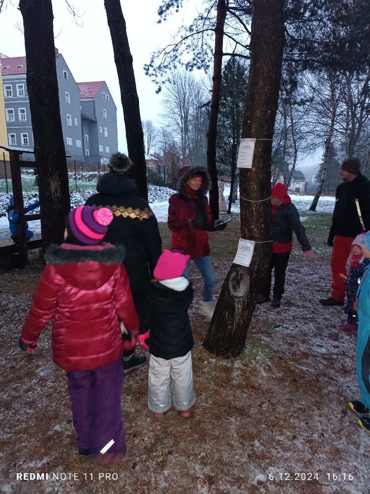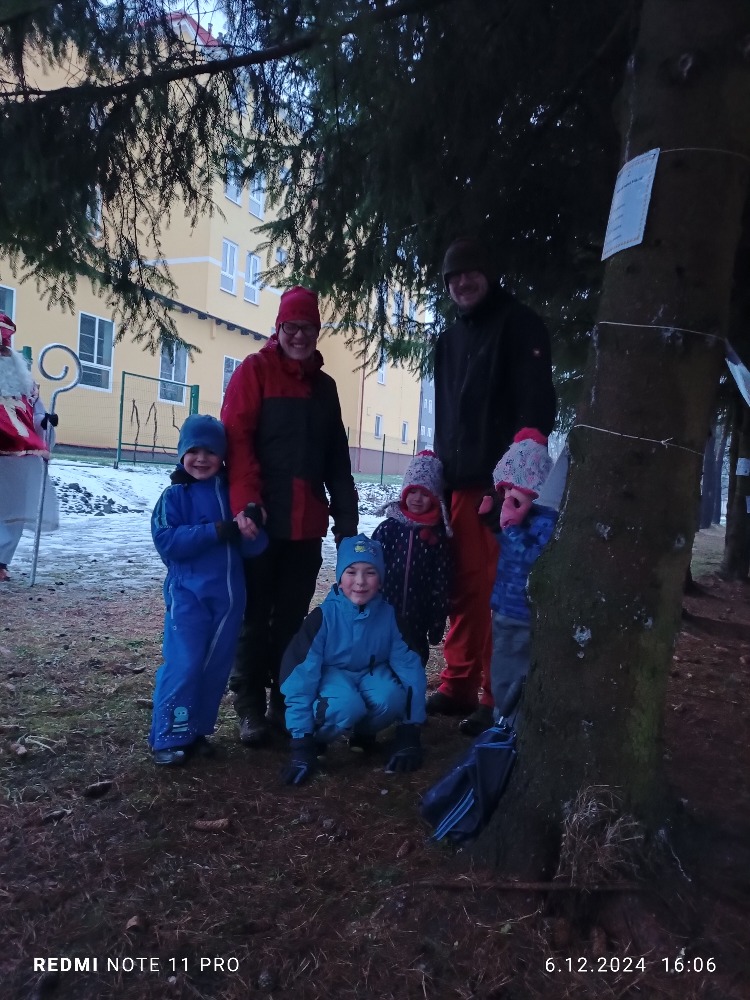 V pátek 6.12. se konala za naší školou Mikulášská stezka pro malé i velké děti a jejich rodiče. I přes velkou nepřízeň počasí se nás pár sešlo a vědomostní stezku absolvovalo. Na konci na každého čekala sladká odměna v podobě medaile z perníku. Na ohni jsme si opekli buřty, ten odborným okem hlídal a připravil pan J.Kuvik, který dohlížel i na opékání. I tady nás navštívil Mikuláš, kterého doprovázeli dva čerti a dva krásní andělé. Díky všem, kteří akci připravili a zároveň i těm, kteří dorazili, i když jak se říká: se venku honili všichni čerti. 🙂