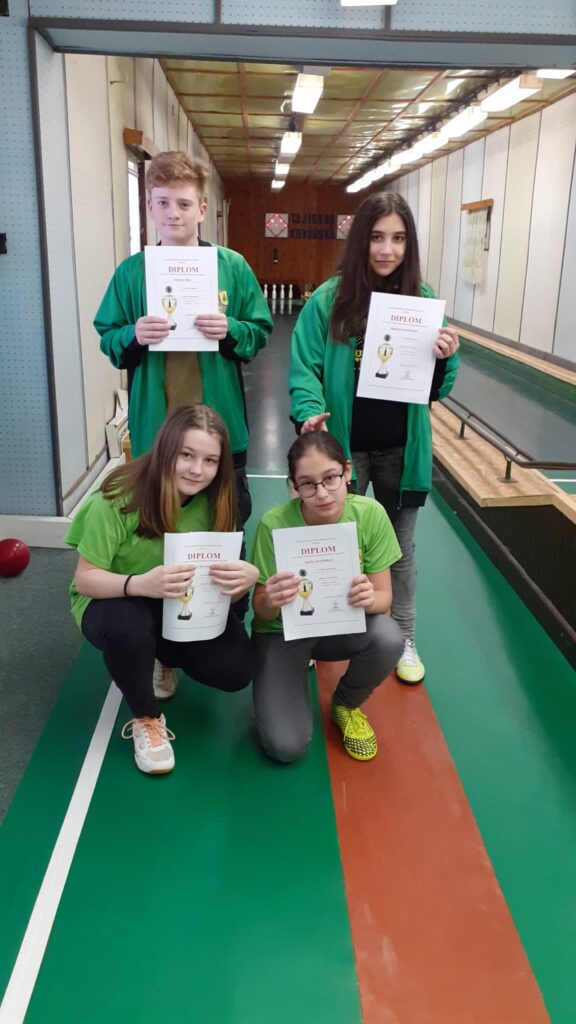 V lednu se mladí kuželkáři z naší školy zúčastnili okresního přeboru v Chomutově. Všichni podali pěkné výkony a postoupili do kraje. V krajských přeborech konaných v Duchcově si vedli velice dobře. Tereza Jíšková, v kategorii mladších žákyň, obsadila za svůj skvělý výkon 1. místo a stala se tak přebornicí Ústeckého kraje. Výborně si vedly i sestry Grünfeldovy. Angelina obsadila 2. místo a Jenifer 3. místo. Ani Toník Mika nezaostal a získal skvělé 3. místo. Všichni za kategorii starších žáků a žákyň.