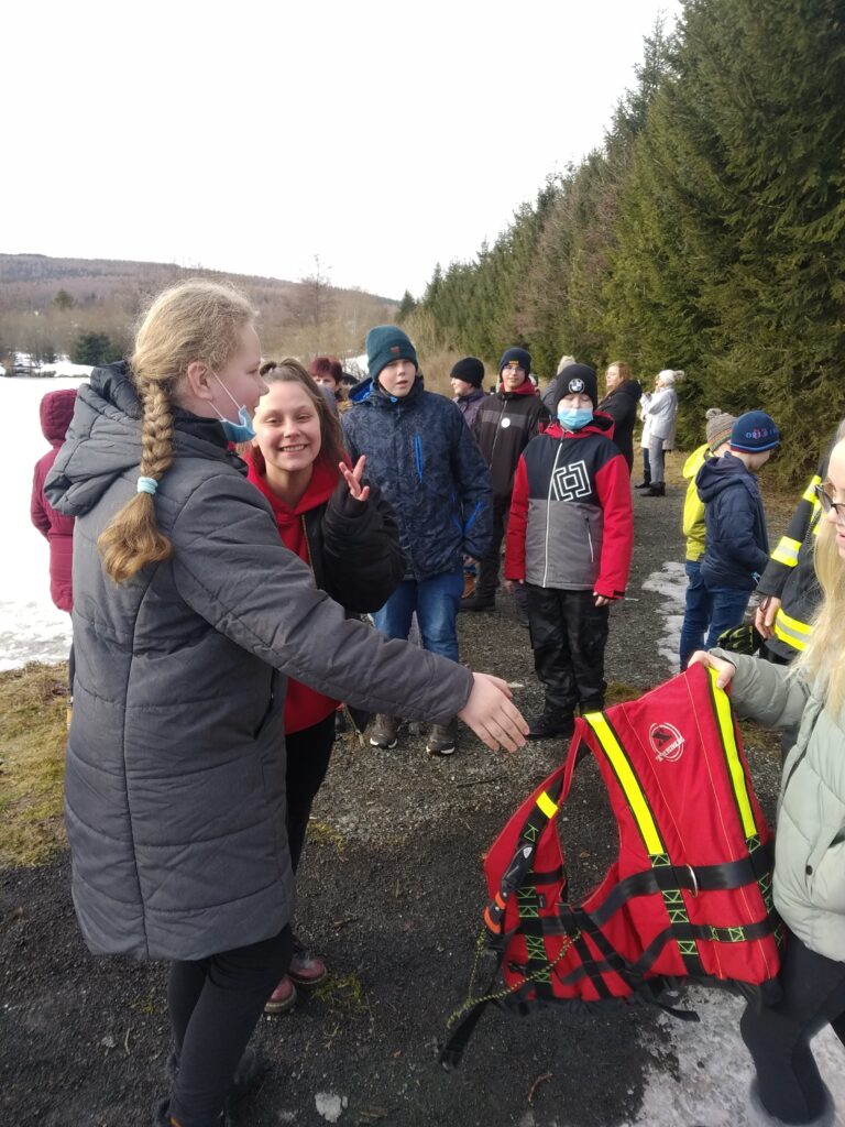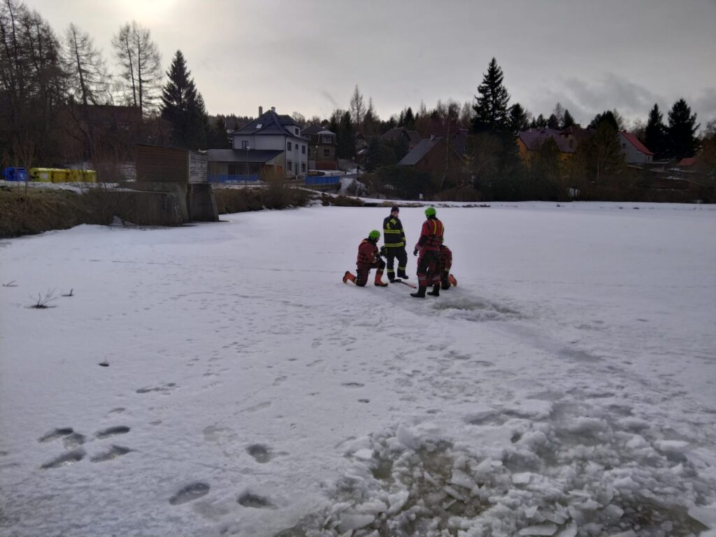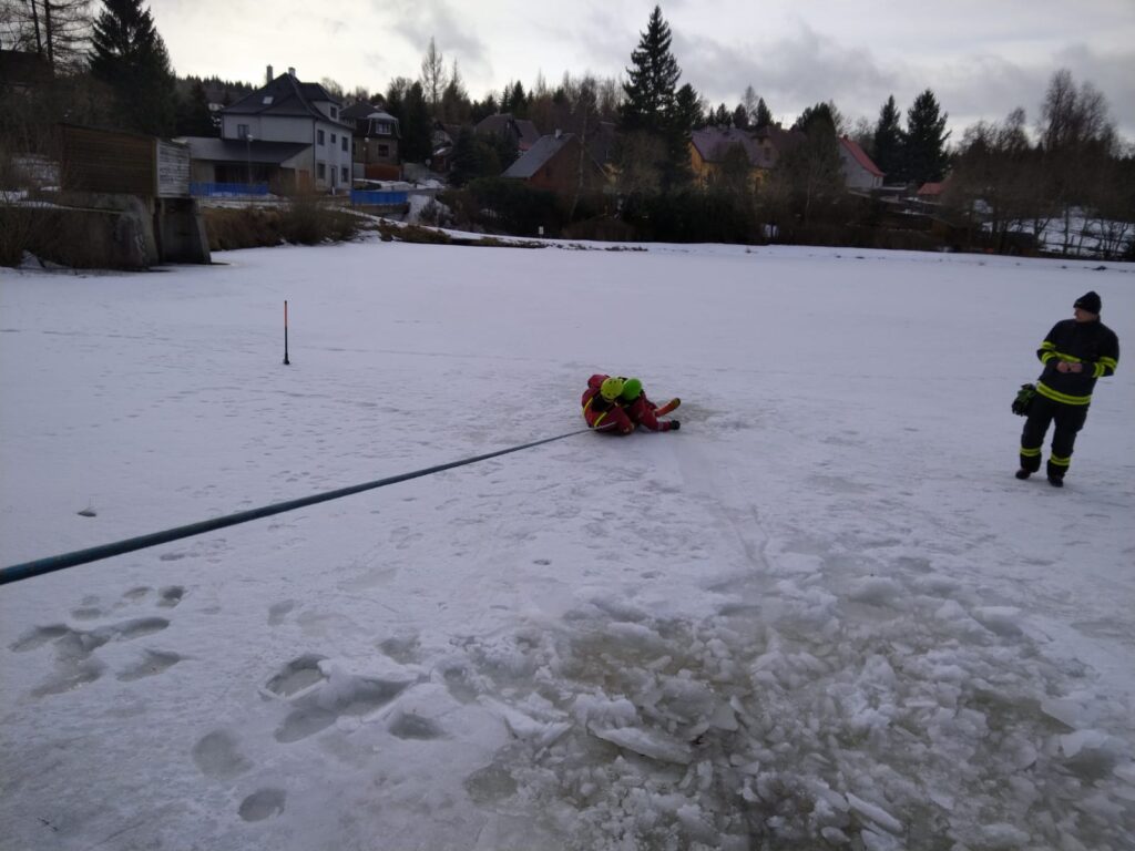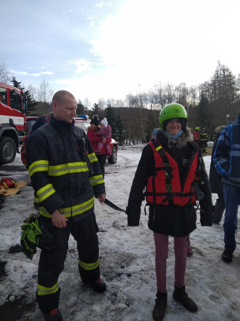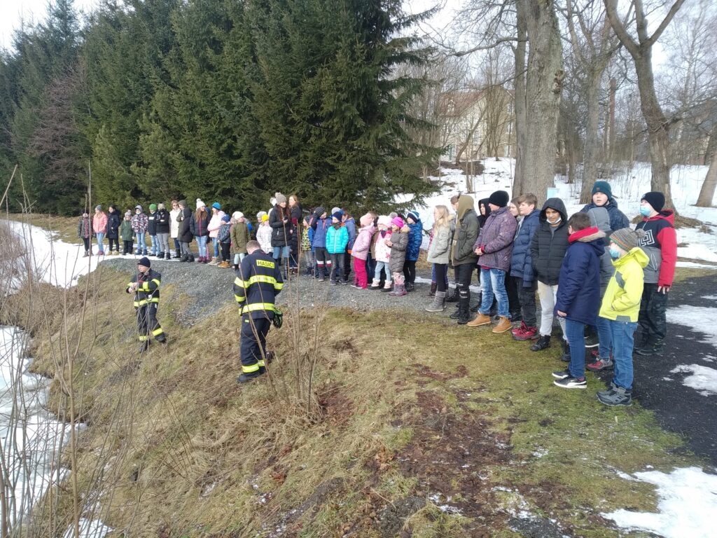 Na rybníku nedaleko školy na naše žáky čekali hasiči HZS Klášterec nad Ohří. Děti se dozvěděly, že hasiči, kromě likvidace požárů, pomáhají i při autonehodách, záchraně zvířat, při povodních a jiných záchranných akcích. A to nám právě zde předvedli. Vysvětlili dětem nebezpečí zamrzlých ledových ploch a názorně jim ukázali, jak zachraňují člověka, který se na zamrzlé ploše propadl. Všichni sledovali záchranné akce se zatajeným dechem a hasiče odměnili potleskem. Na závěr měly děti možnost vyzkoušet si záchrannou vestu a hasičské helmy. Odcházeli jsme zpět plni dojmů a nevšedních zážitků.