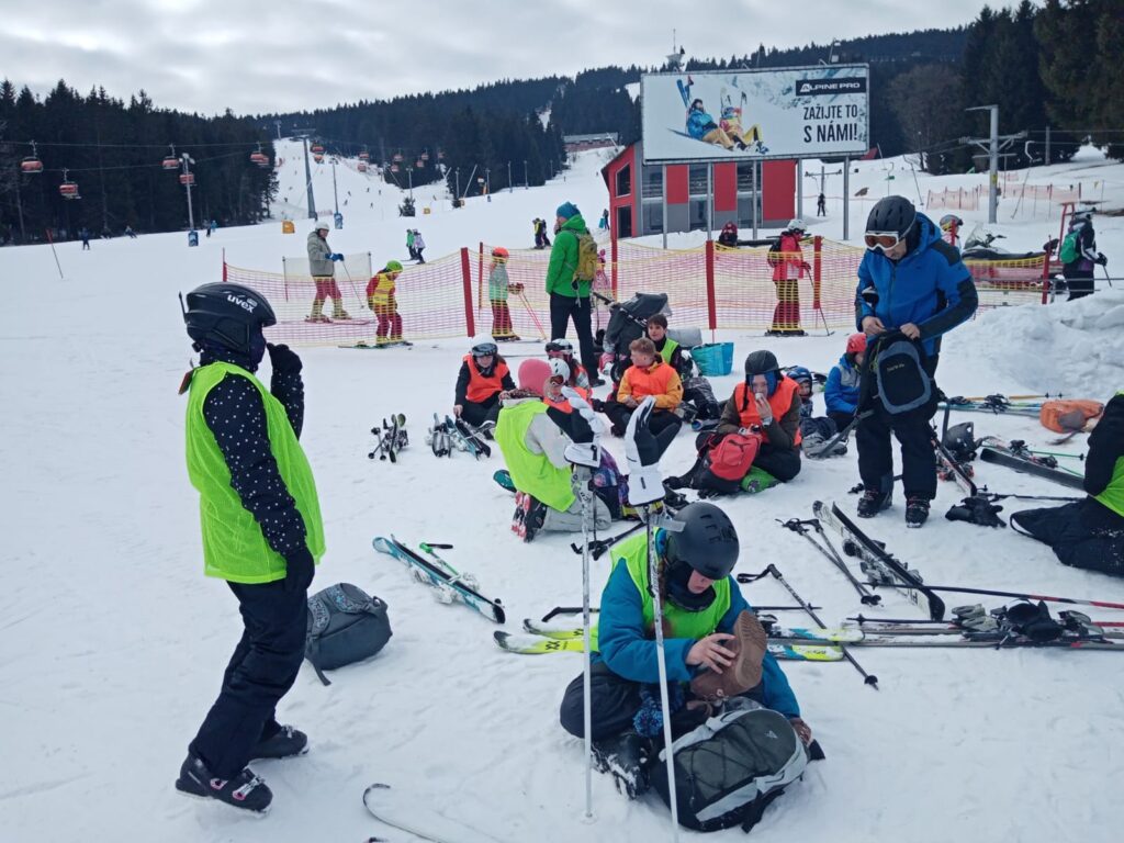 Konečně jsme se dočkali a mohli vyrazit na lyžařský výcvik ve dnech 14.-18.3.2022. Jelo 14 žáků a 3 instruktoři. Počasí se nám až na poslední den vydařilo a dětem i nám se výcvik líbil. Začátečníci se toho hodně naučili, pokročilí se přiučili a zdatní lyžaři si dobře zalyžovali. Velké poděkování patří všem, ale hlavně SKIAREÁLU KLÍNOVEC s.r.o. a Lyžařské škole JPK Klínovec-Boží Dar. Díky nim jsme měli dopravu a skipasy zcela zdarma a žáci si mohli vypůjčit lyžařské vybavení. Věříme, že příští rok se nám lyžařský výcvik zase podaří. Už se těšíme.