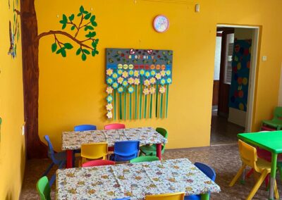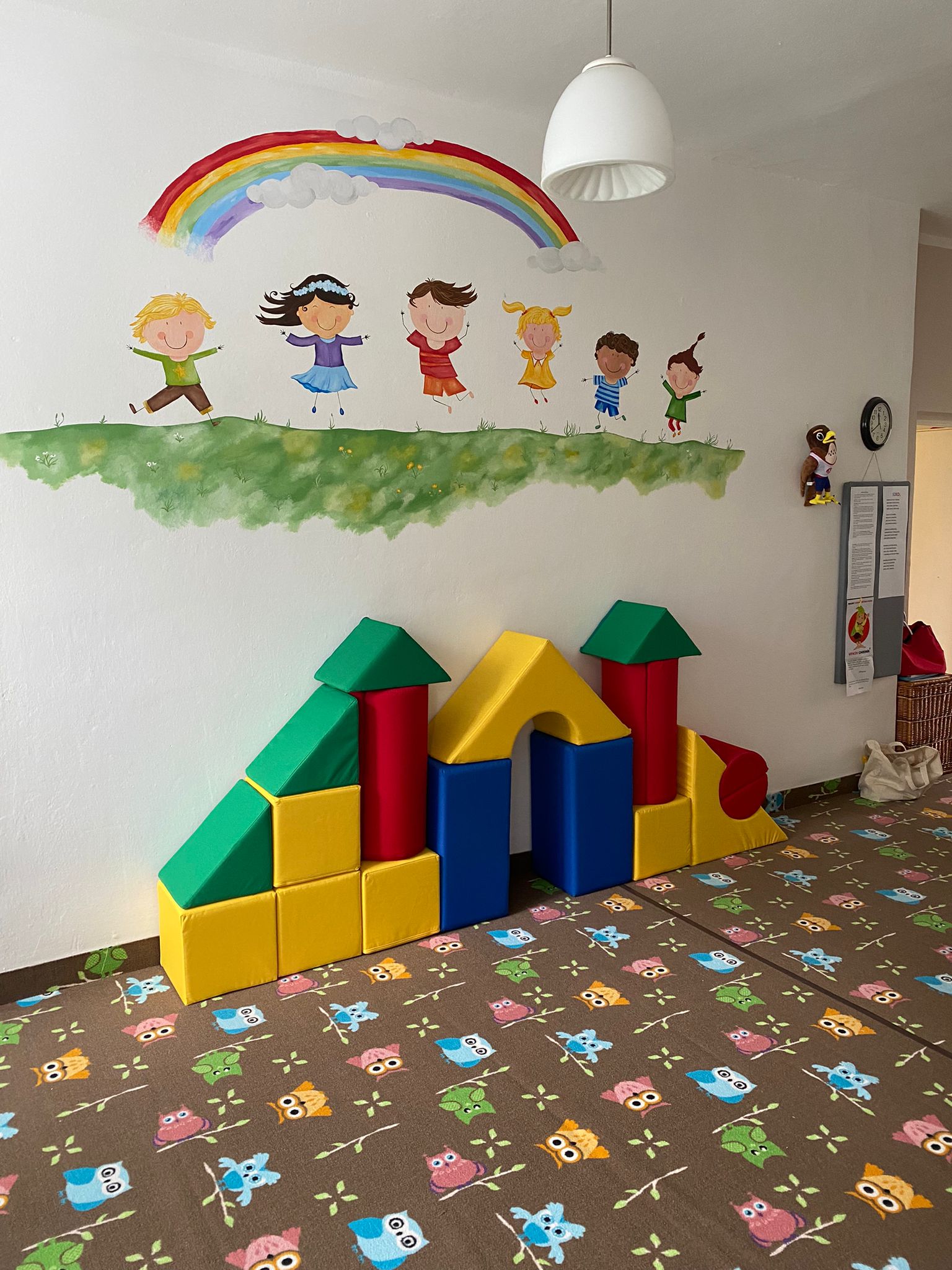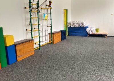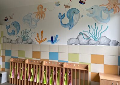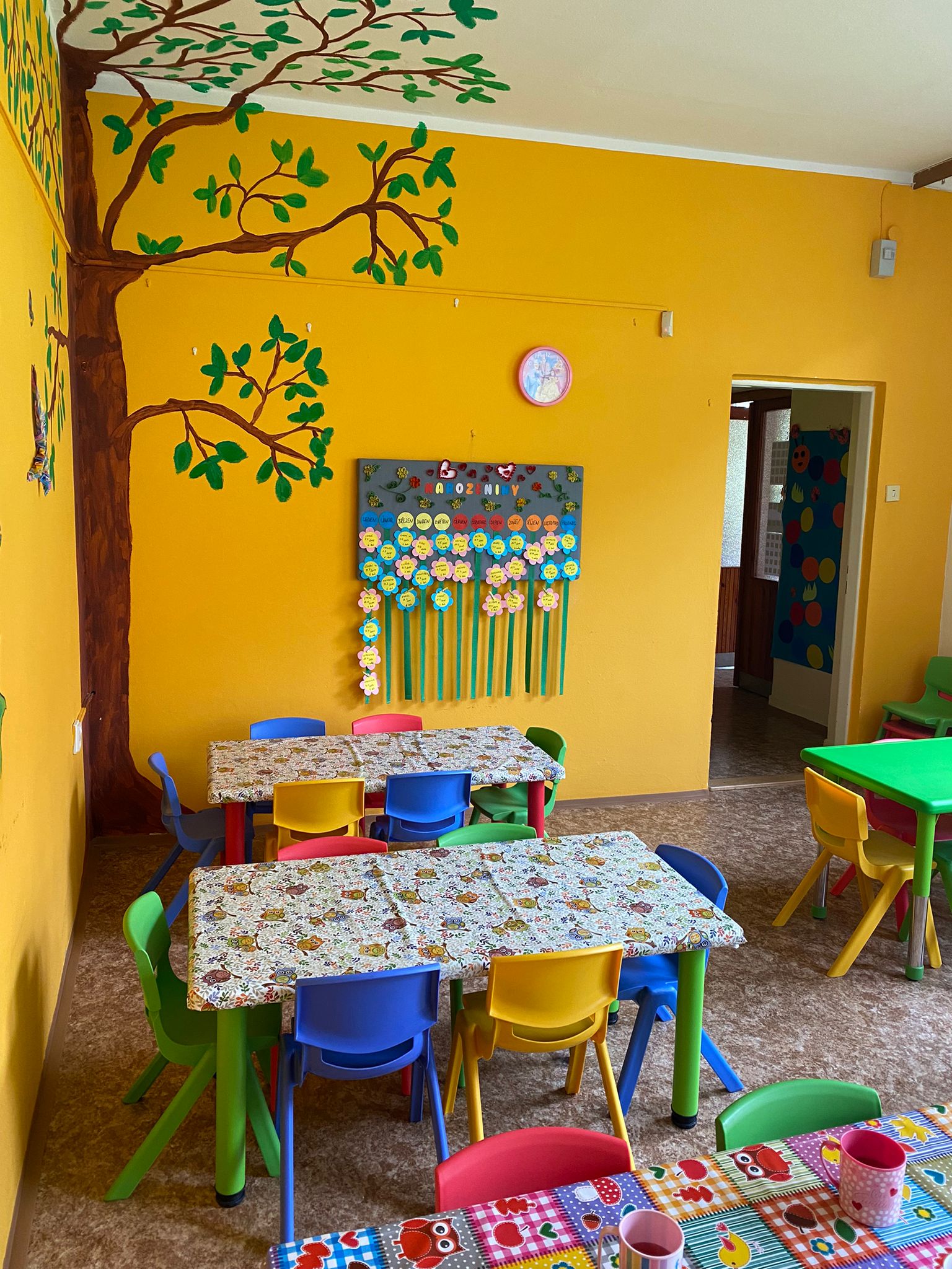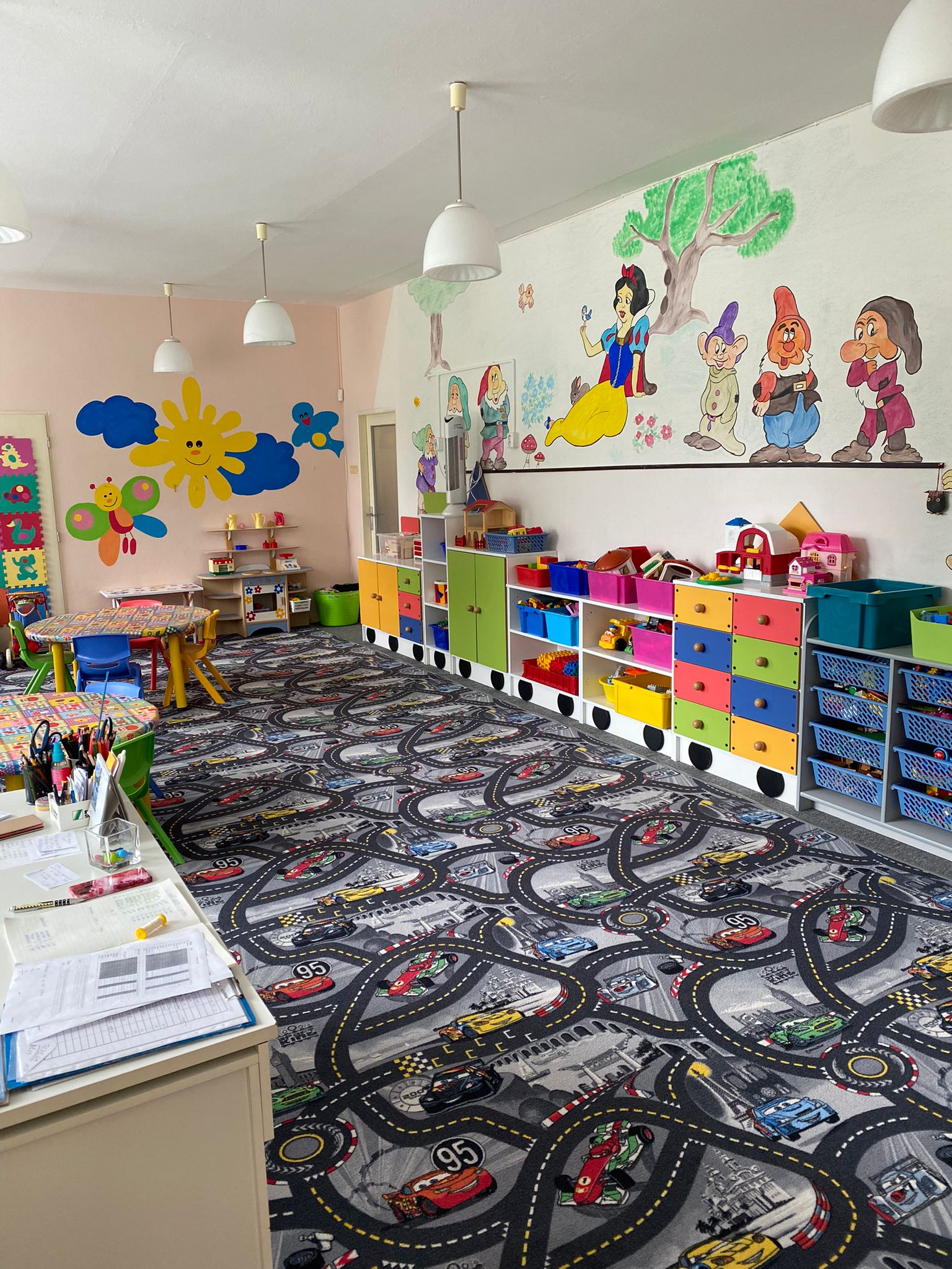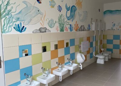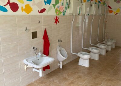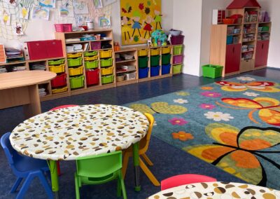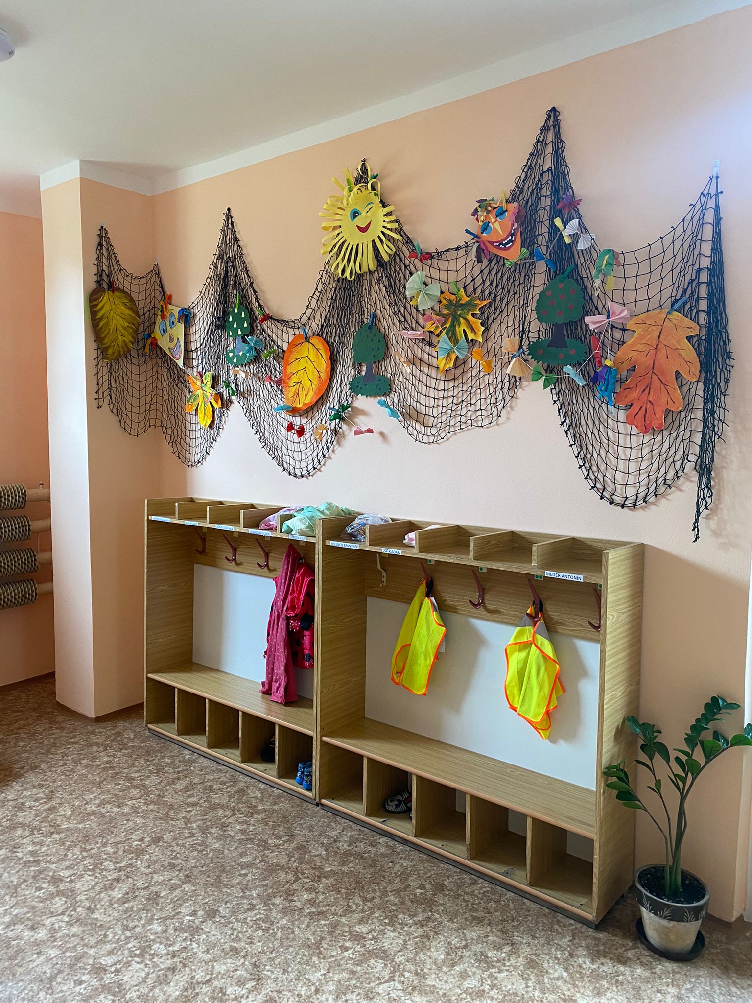 Prostory MŠ zahrnují technické zázemí a kancelář, sloužící personálu, pro potřeby dětí je zde plně vybavená šatna, jídelna, třídy,tělocvična a odpočívárna. Stravu do MŠ dovážíme v termoboxech dle hygienických norem a předpisů.