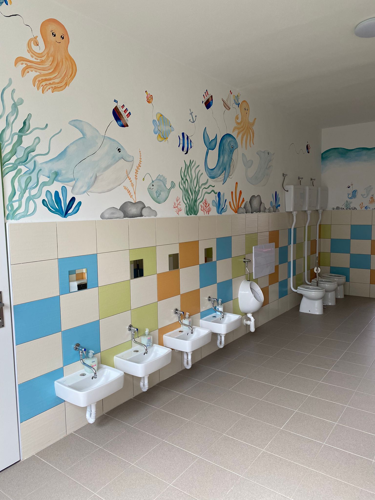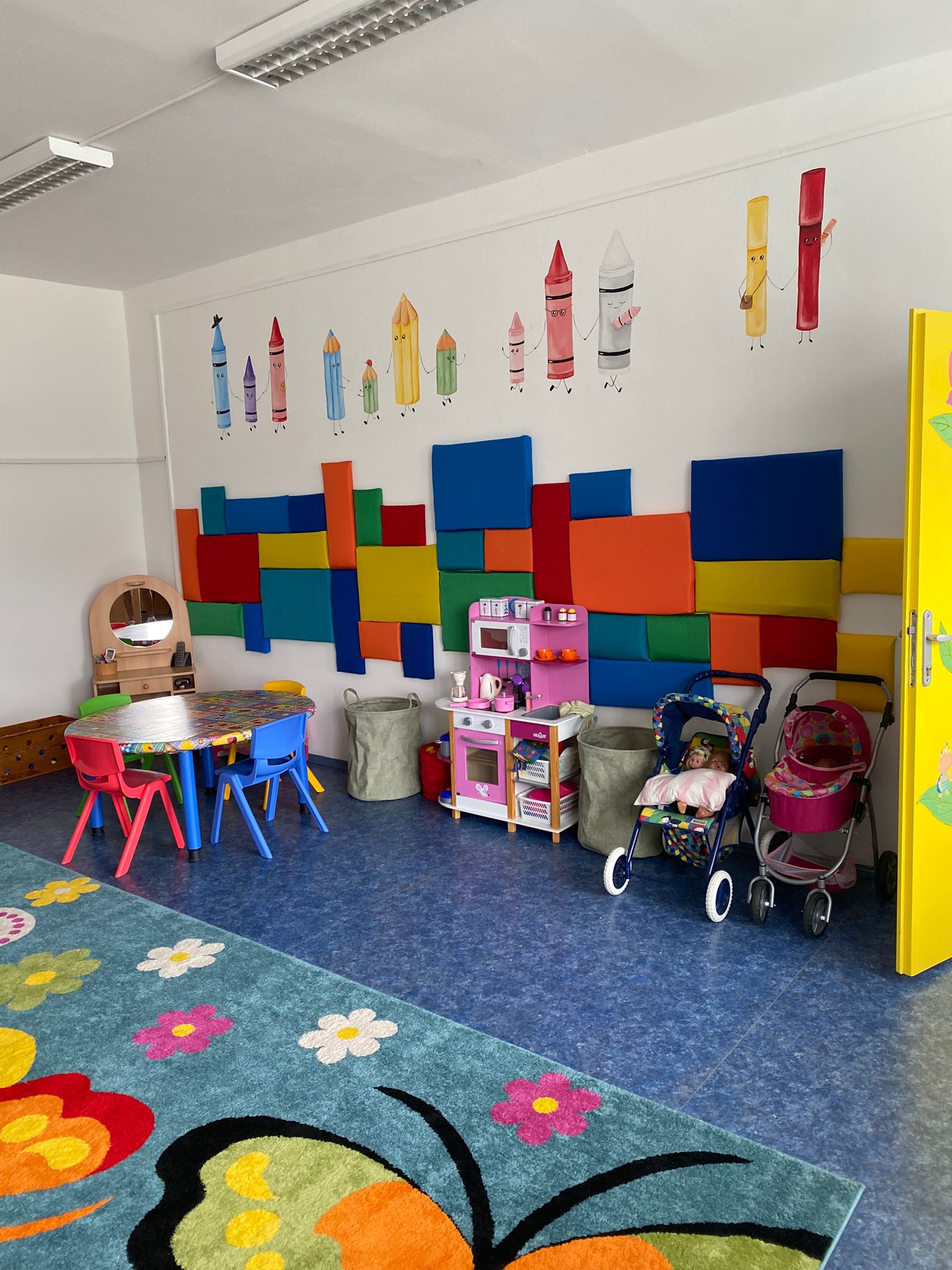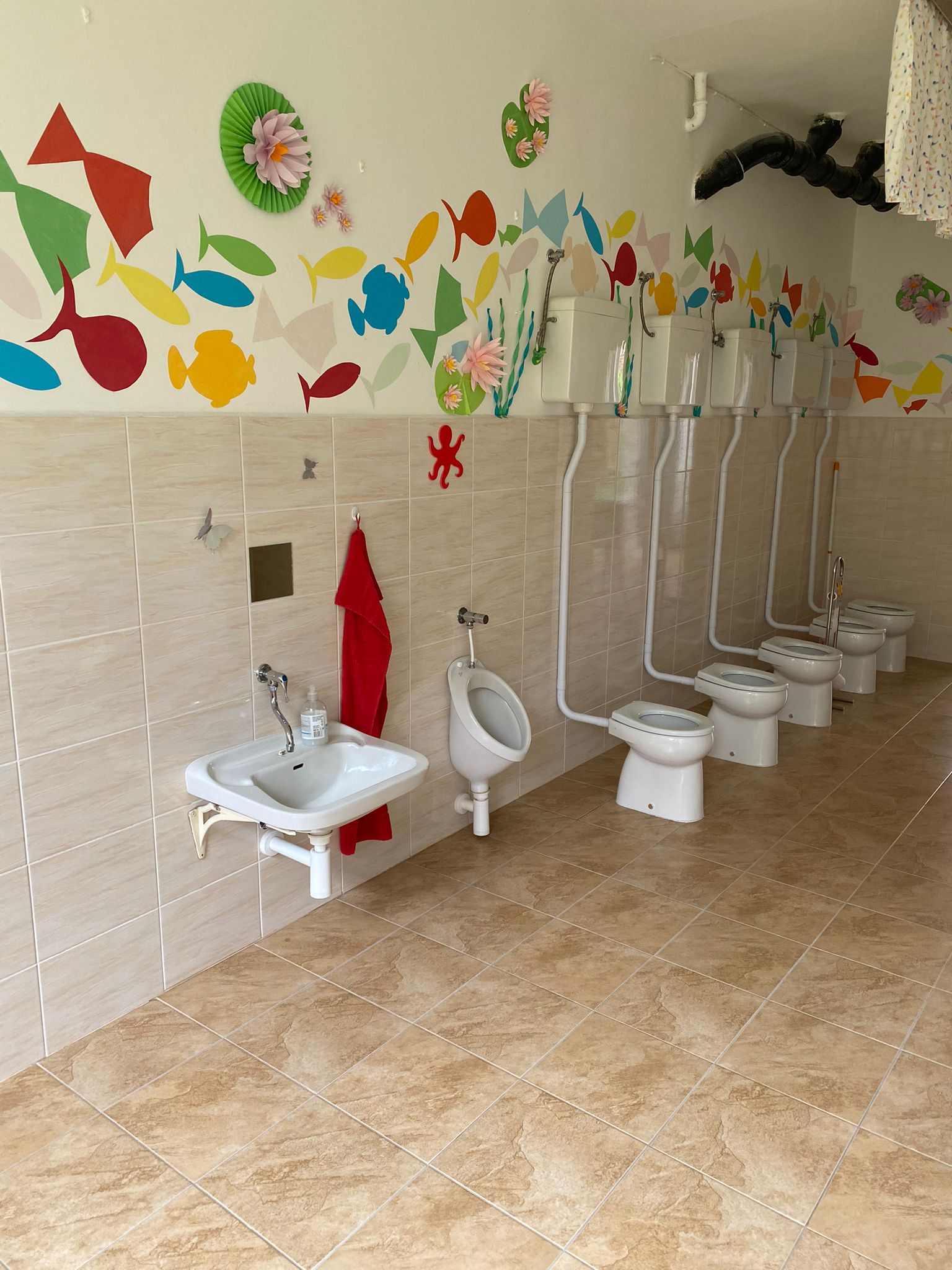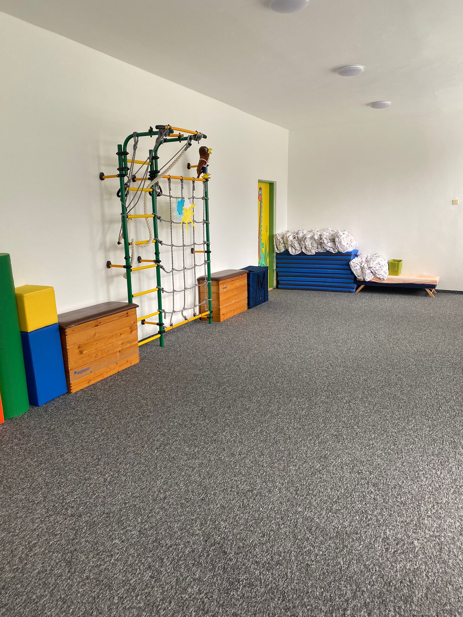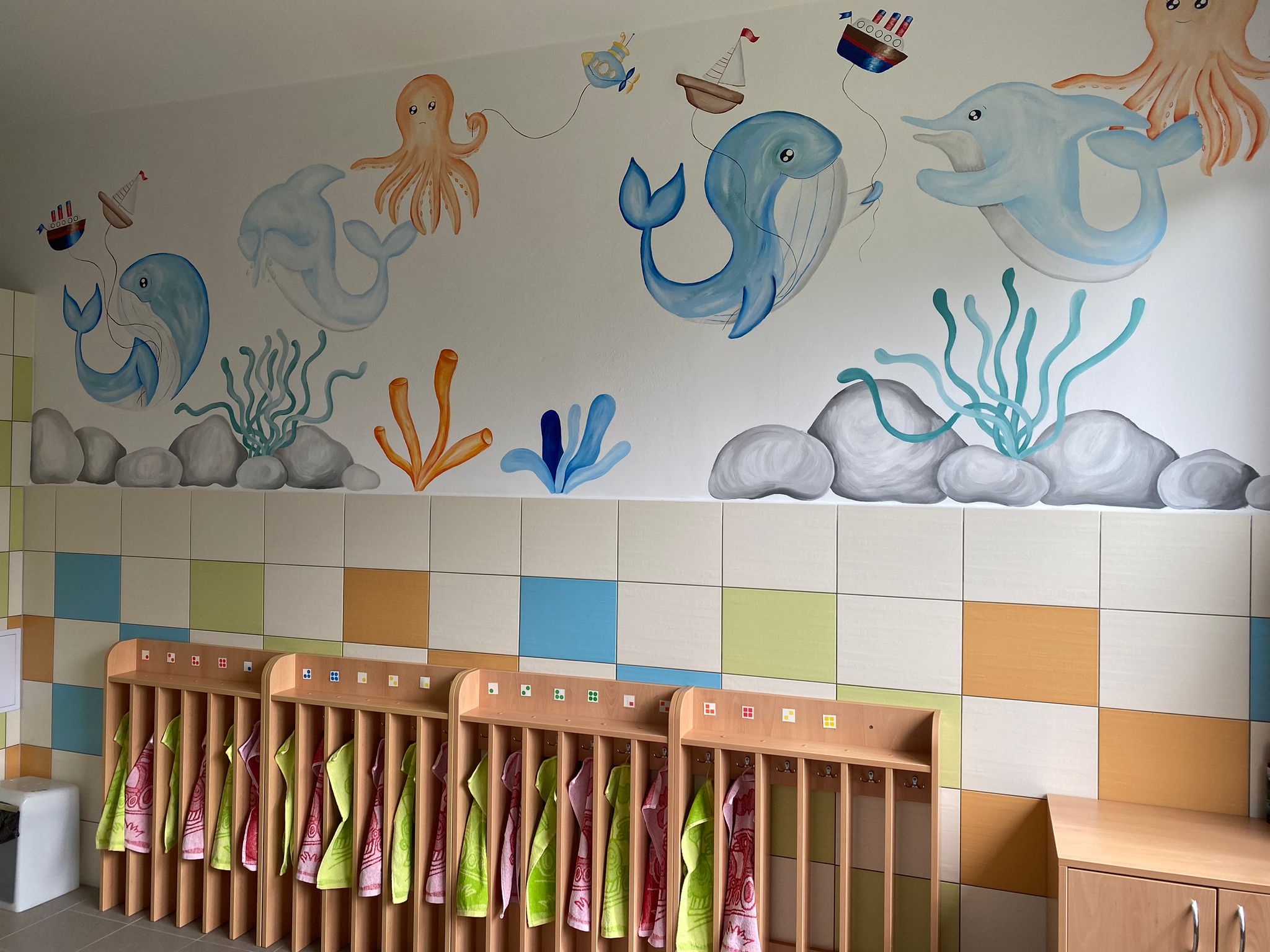 Prostory MŠ zahrnují technické zázemí a kancelář, sloužící personálu, pro potřeby dětí je zde plně vybavená šatna, jídelna, třídy,tělocvična a odpočívárna. Stravu do MŠ dovážíme v termoboxech dle hygienických norem a předpisů.
