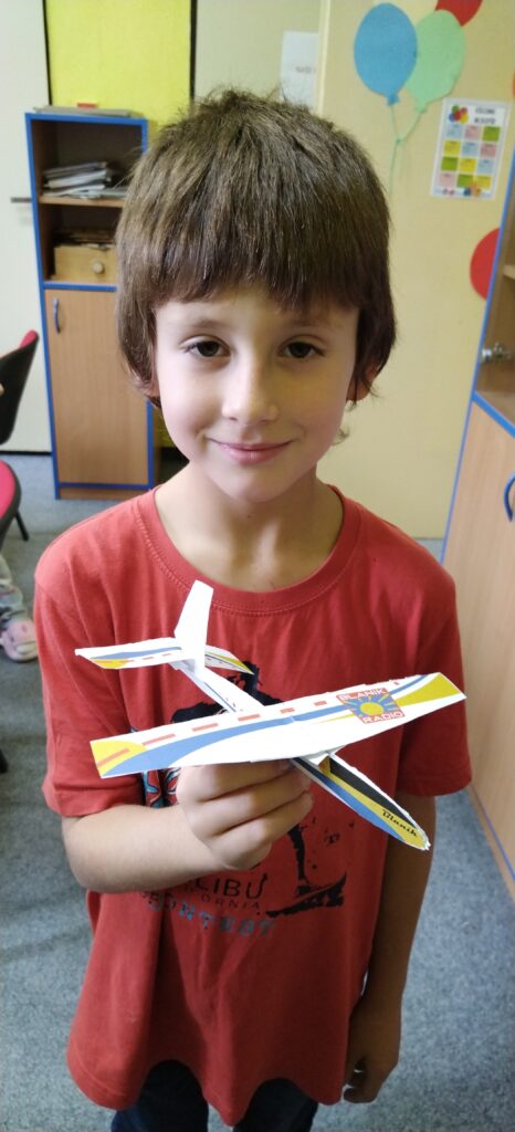 Damian jako první našel vystřihovánku letadla a poradil si s její realizací.