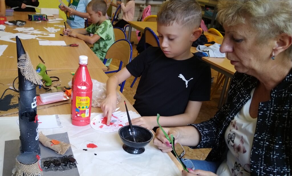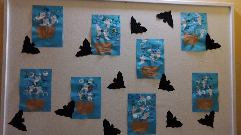 Na Halloweenské dekoraci se postupně podíleli s pani vychovatelkou i někteří účastníci.