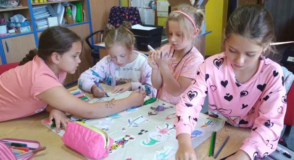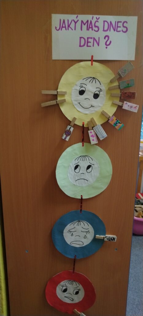 Nový školní rok jsme zahájili přípravou na formativní hodnocení účastníků. Každý prvňáček si vybarvil malý formát čtvrtky, který jsme nalepili na kolíček. Ten budou účastníci umisťovat na naše „sluníčka“ a hodnotit tak každý den, jak se jim líbilo ve školní družině.