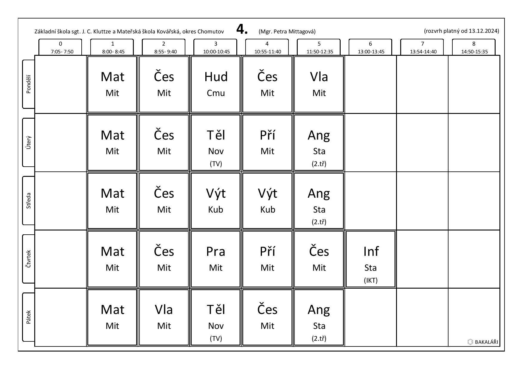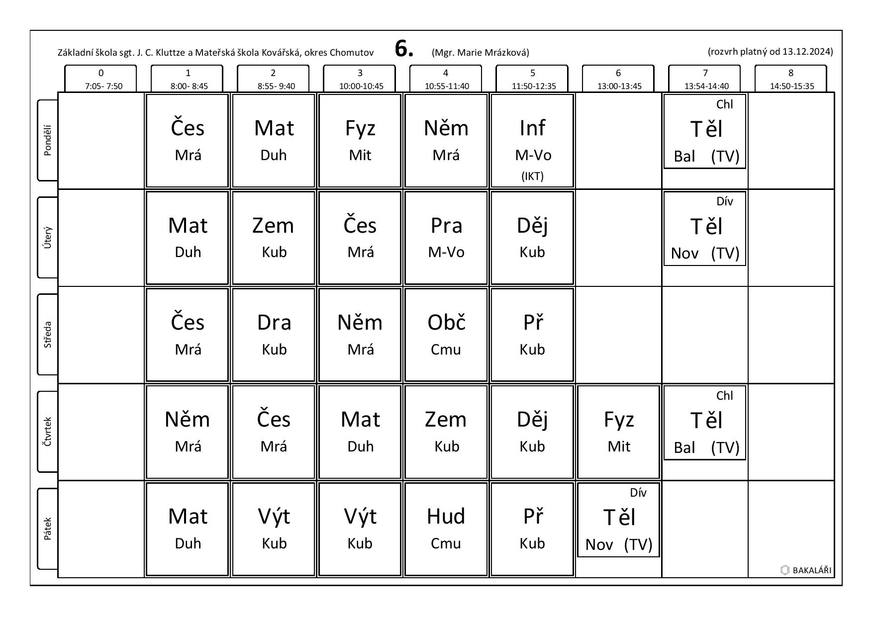 Úvodní stránka Škola Učebny Kroužky Rozvrh hodin Dokumenty GDPR Školská rada Historie Mateřská škola Aktuality MŠ Tvorba dětí Dokumenty MŠ Kontakty MŠ Školní jídelna Jídelní lístek Školní družina Aktuality ŠD Tvorba žáků El. žákovská knížka Kontakty Rozvrhy hodin